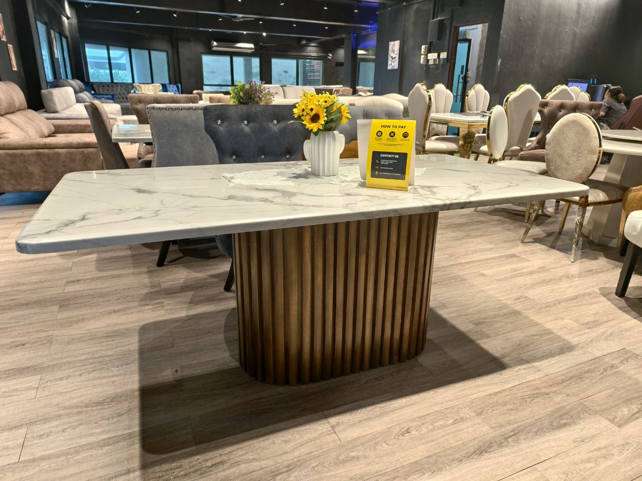 - Premium Marble Top: Luxury marble surface untuk elegant, easy-clean dining experience